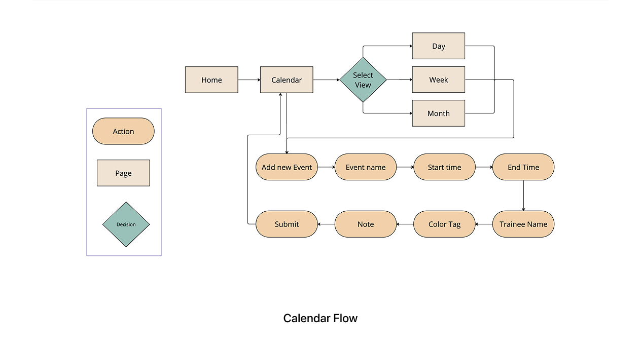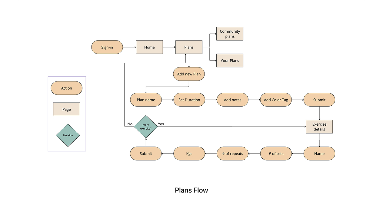 In order to investigate best solutions for most complicated flows of the app, “plan section” and “calendar section”, these two flows have been designed;