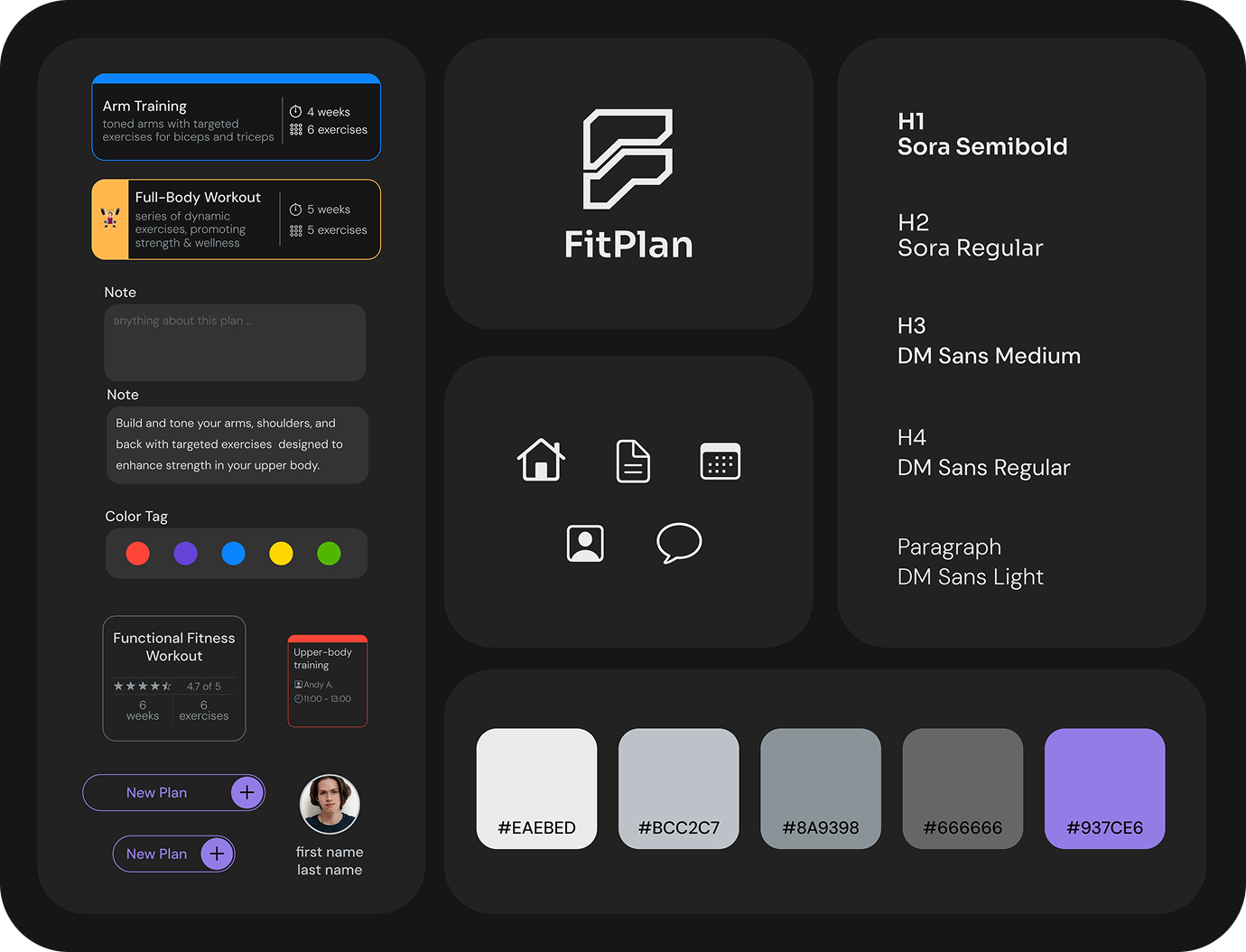 the app name is FitPlan, It clearly demonstrate the essence of the app in two simple words: fit (the goal of the app for clients), and plan (the goal of the app for trainers).